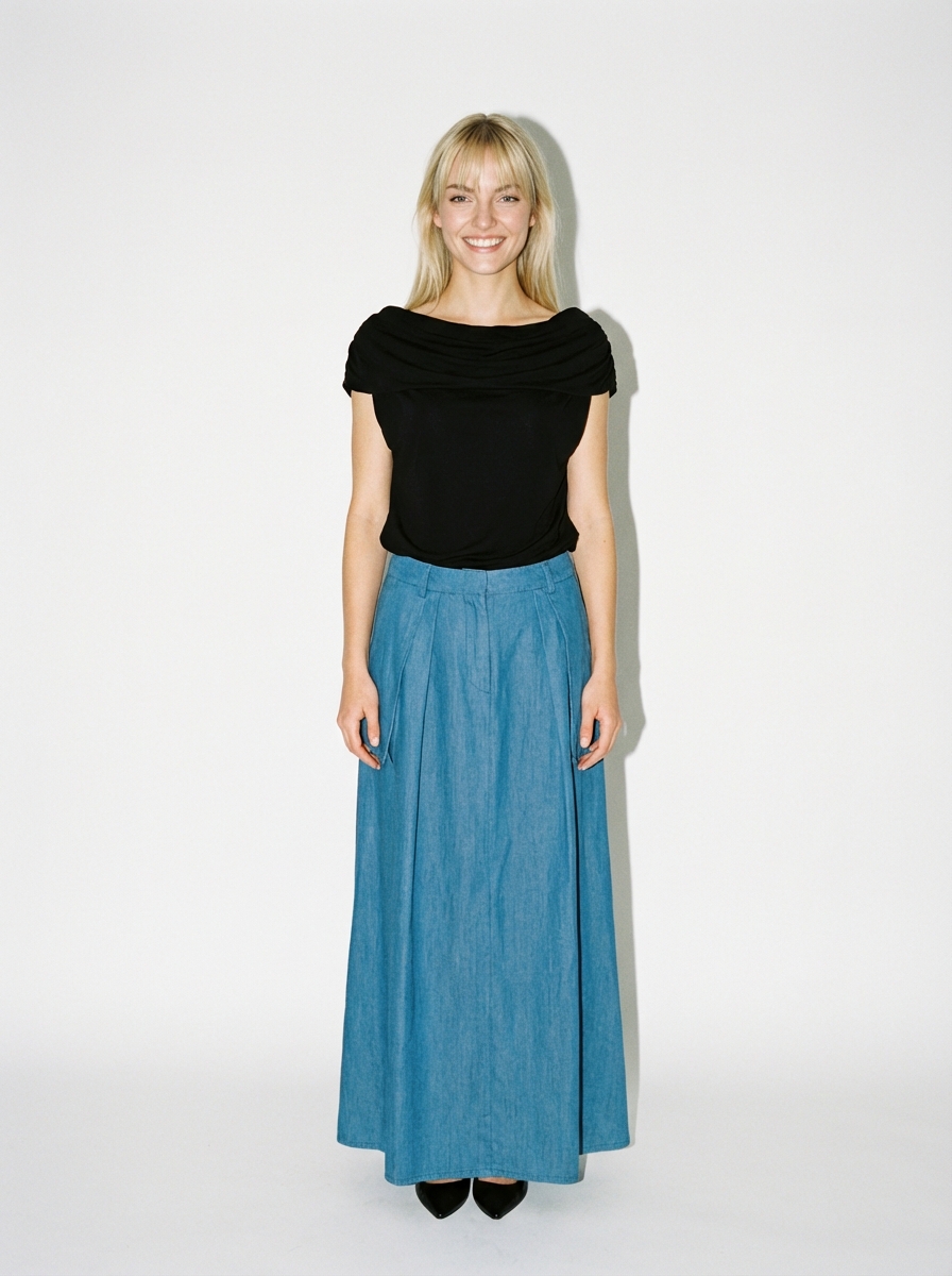 Falda midi textil tencel